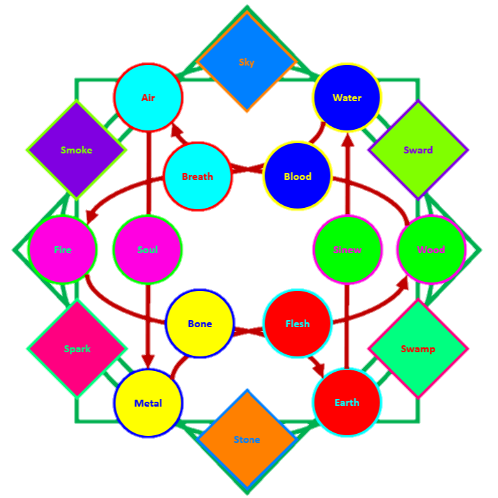 - Metal, Death, Wood, Decay, Earth